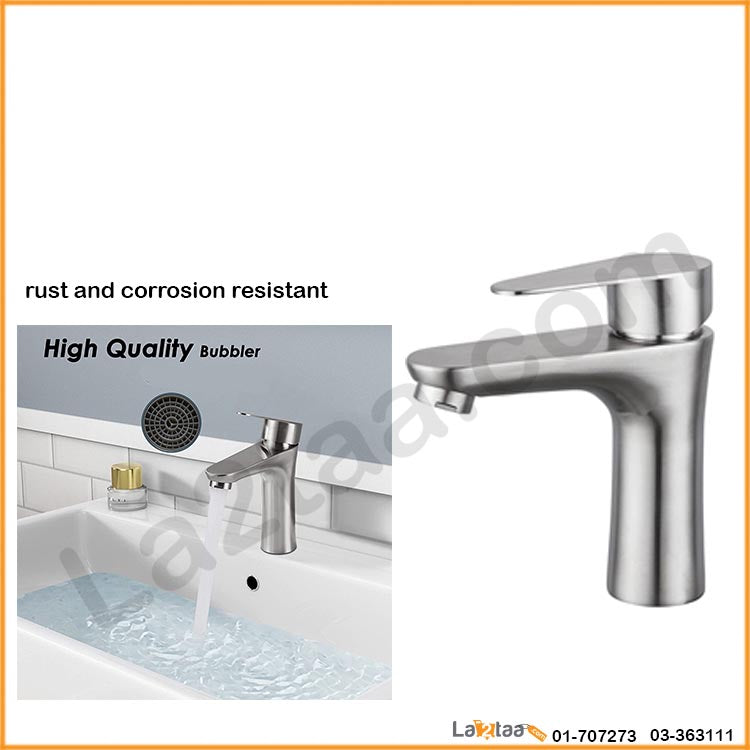 - Construction: Single lever bathroom faucet with commercial grade stainless steel, superior rust and corrosion resistant finish.