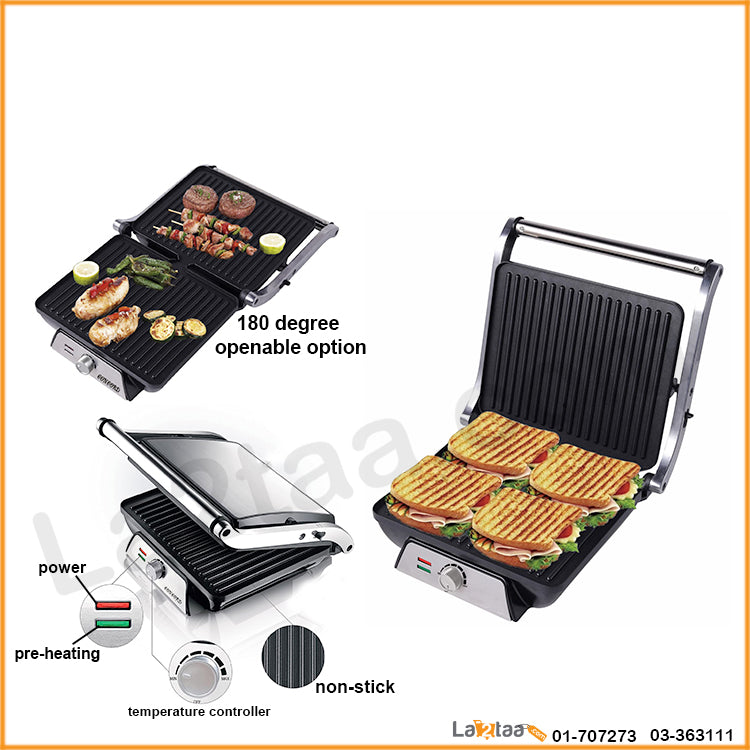 - Floating hinge system automatically adjusts to any size of toast, meat or snack