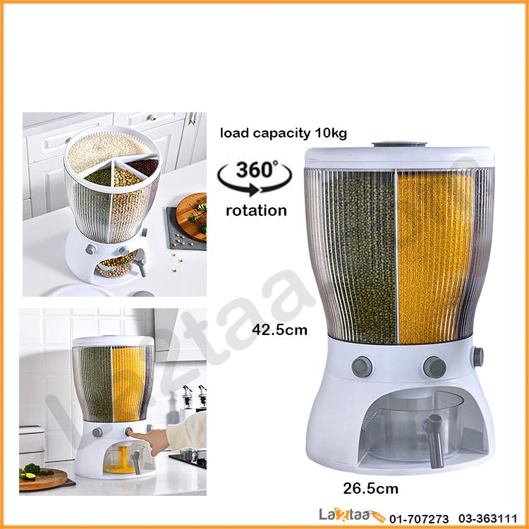 - Easy Dispensing: Stock Drop offers you a comfortable option to fill your breakfast bowls smoothly without an unnecessary mess. Our 4-compartment rice dispenser just needs a simple 360 degree rotation and a button to push, to dispense fresh, insect-free food right from an airtight container.