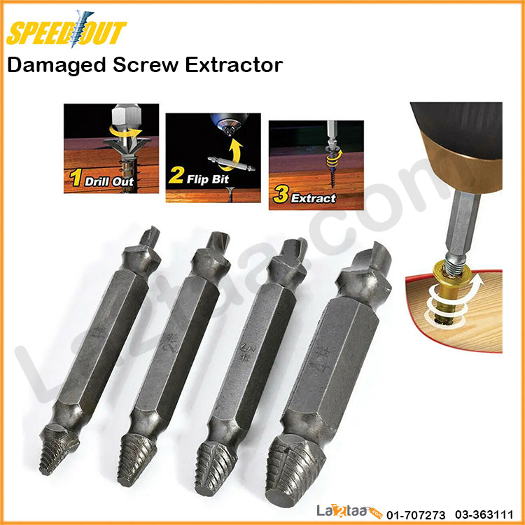 - Has 4 piece screw extractor setthis works with any drill and any screw size or bolt, perfect for /broken and screw removal